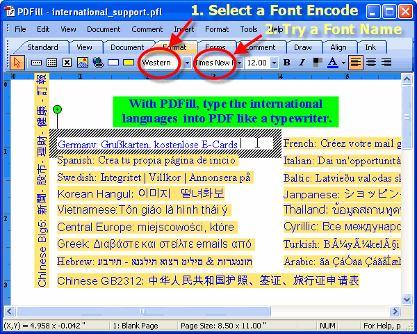 With PDFill, you can type your own language into PDF like